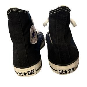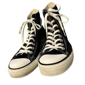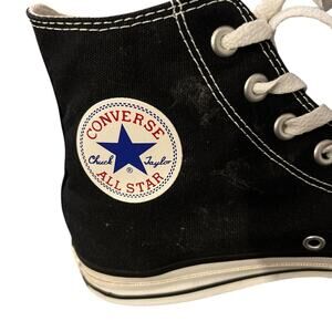 Step out in style with these classic Converse All Star Chuck Taylors! These unisex sneakers come in a sleek black color, perfect for any outfit. This pair is in great condition. Get ready to turn heads with these iconic shoes!