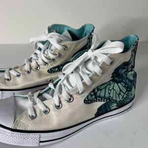 Converse Unisex Chuck Taylor All Star Hi Top Womens 10 Turquoise Butterfly Print