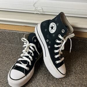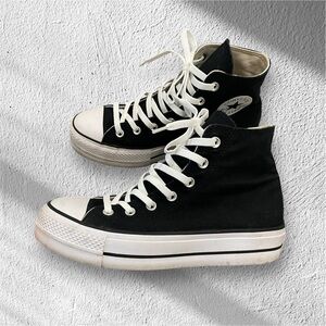 Classic high-top sneakers with iconic Chuck Taylor branding and durable canvas construction. Rubber sole for traction and durability. Made in Vietnam.