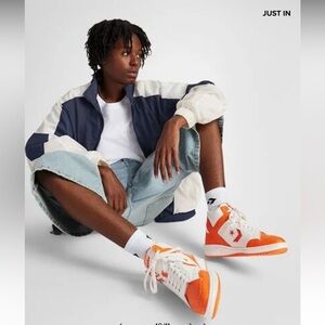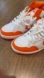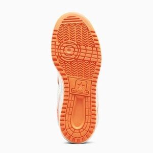 Stylish Converse sneakers in vibrant orange and white. Perfect for casual wear.