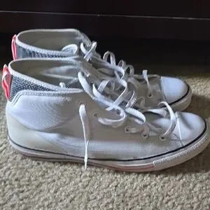 Converse Chuck Taylor All Star Street Mid-Top sneakers in white. White canvas high-top sneakers by Converse. Black trim and logo accents. Lace-up front for adjustable fit. Classic casual silhouette.