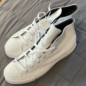 White Hightop Converse with thick sole. Super comfortable. I never got around to wearing them and just trying to make room in my closet. If you have any questions, feel free to ask. Thanks