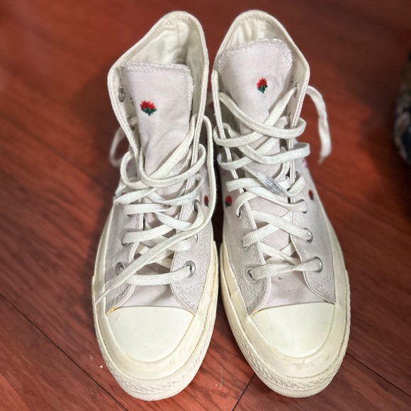 White Converse trainers with embroidered flowers, it’s a US 7, look at the following pic for details of the sizing! #streetwear