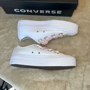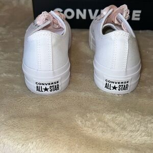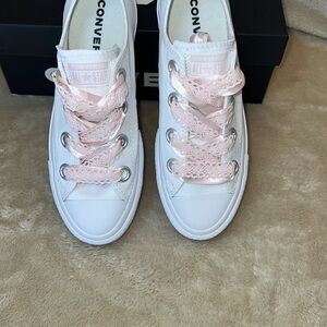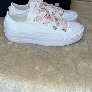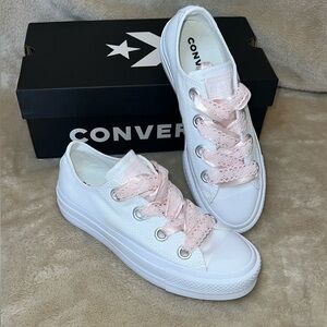 Converse White Sneakers with Pink Laces