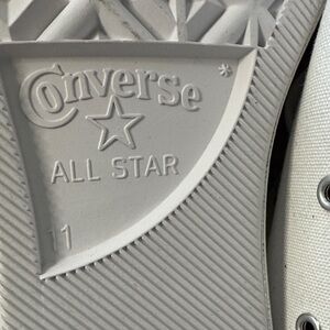 Stylish Converse shoes. White upper with red sole. Unique text detail on toe.