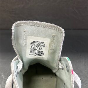 These Converse sneakers feature a classic canvas design in a striking white and red colorway. With a durable rubber sole and comfortable fit, they are perfect for casual outings. The timeless style ensures they remain a staple in any wardrobe.