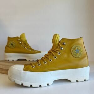 Converse Women 10 Yellow Genuine Leather Gore Tex Chuck Taylor High Top Sneakers