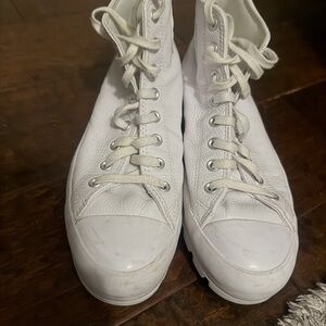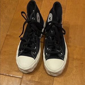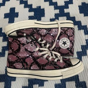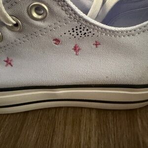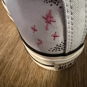 Charming lavender platform sneakers with pink star details. Classic Converse style for women