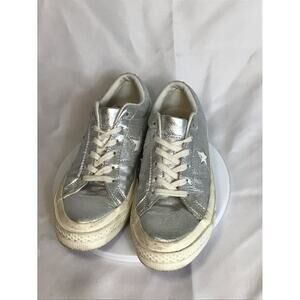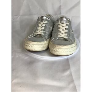 Converse Women Sneakers Sz.6.5 Silver EUC Glitter Metallic Festival Comfort