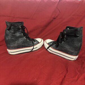Converse Women All Star Platform Hidden Wedge Heel Chuck Taylor Black Sparkle