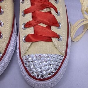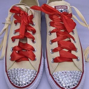 Converse Womens 9 Ladies Cream Sneakers Red Crystal Embellished Accents All Star