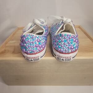 Converse- Gem covered White shoes- Women's 5.5- New and never worn- colors are teal and purple.