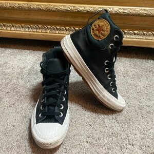 Classic high-top design with black canvas and white laces. Durable and stylish for everyday adventures.