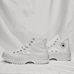 Elevate your style with these Converse CTAS Lugged Heel Hi Tops in a crisp white! These shoes are brand new with tags (NWT) and ready to turn heads. The lugged heel adds a trendy and edgy touch to the classic Converse design. Perfect for adding a bit of height and a lot of style to any outfit. Don't miss out - grab these statement shoes today!