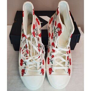 Stylish Converse sneakers with a vibrant cherry print. Features a classic high-top design. Perfect for casual wear.