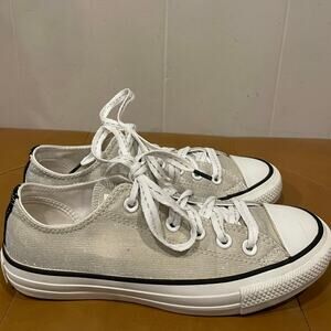 Converse Women’s Chuck Taylor Low Tops Silver Shimmer Sparkle Lace Up Size 7