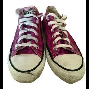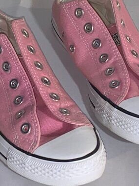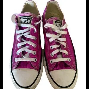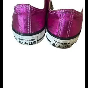 The Converse Women's Chuck Taylor Metallic Pink All-Star Shoes in size 8 are a stylish and versatile addition to any woman's athletic shoe collection. Featuring a metallic pink color with a star theme, these sneakers offer a trendy and unique look that stands out. The Converse Chuck Taylor model ensures comfort and durability, making them a reliable choice for everyday wear or casual outings. Perfect for adding a pop of color to your outfit while also getting a touch of sporty flair with these fashionable shoes.