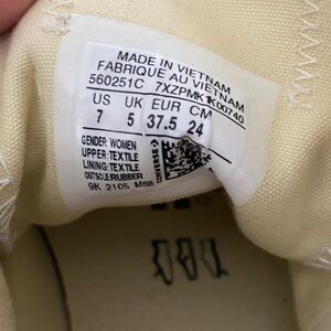 Classic low-top design. Crisp white canvas. Iconic style for everyday wear. 1.25” playform soles. Women’s size 7. Has that nice worn-in look, but super clean soles with lots of life left.