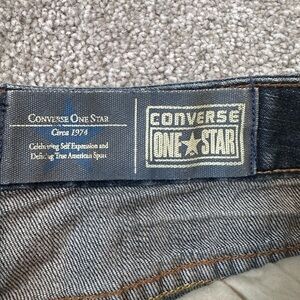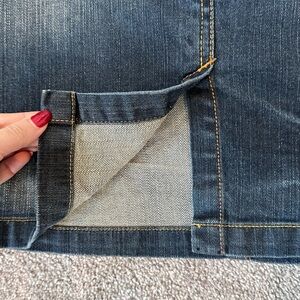 99% cotton, 1% spandex. great, pre -owned condition. some fading. measurements in photos. slight splits in the side.