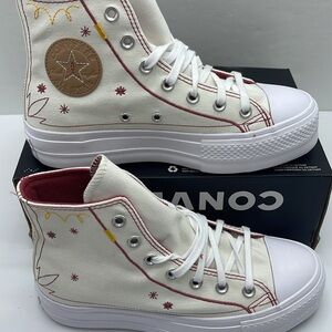 New in the box no lid authentic Converse Women's White and Red High-Top Platform Sneakers A13395C CTAS LIFT HI