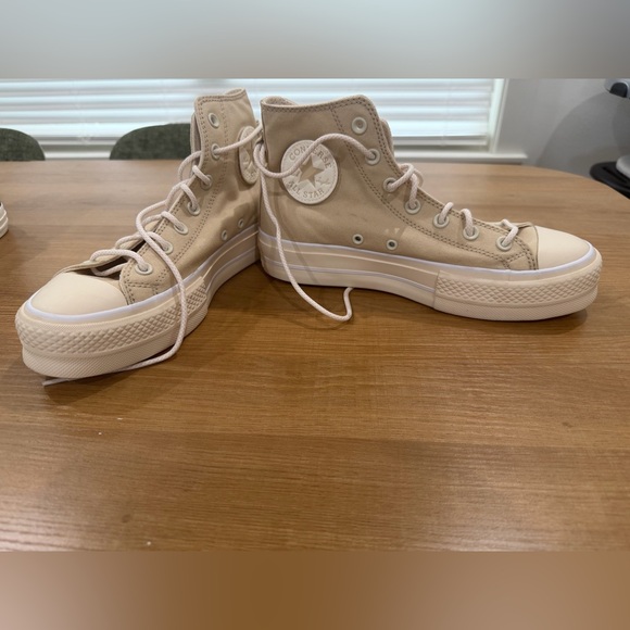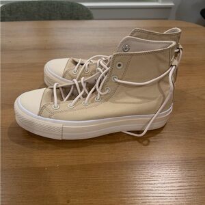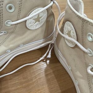 Elevate your casual look with these Converse high-tops. Stylish beige design. Perfect for everyday wear.