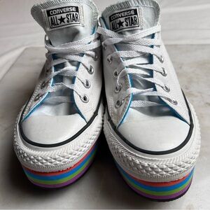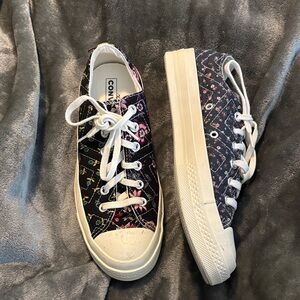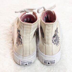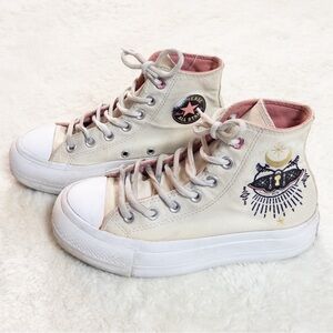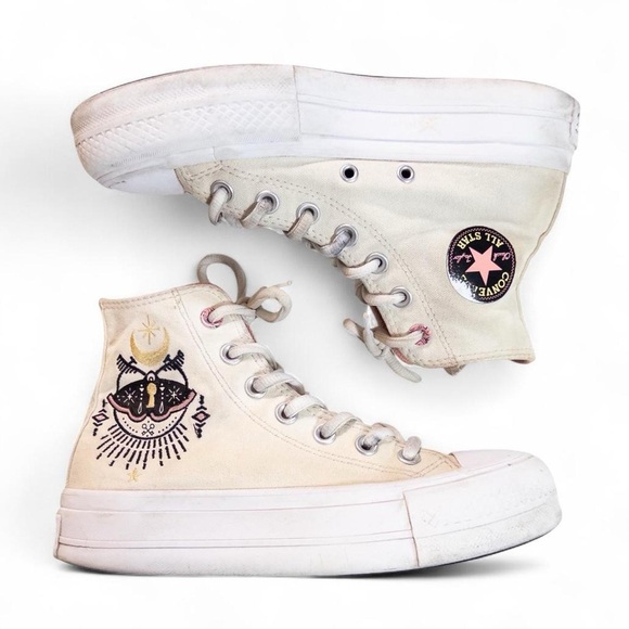 Converse cream embroidered lace up sneakers with a moth and moon size women’s 5. In good gently used condition. Always shipped same or next day. #cottagecore #fairycore #boho #converse #retro