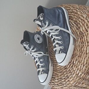 Converse Womens Metallic Blue Leather Chuck Taylor All Star High Top Sneakers S8