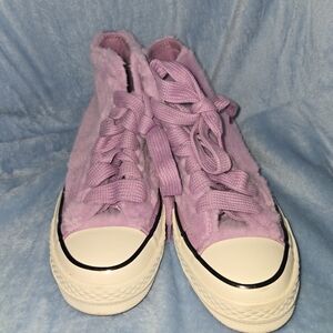 Converse Women's Purple Fuzzy High-Top Sneakers