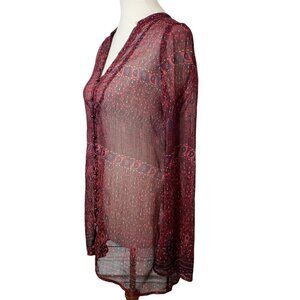 Condition: Pre-Owned - Good - Red Sheer Pullover Long Sleeve Floral Top