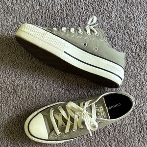 Custom made converses in a sage green with off white accents, worn max of 5 times. Platform style