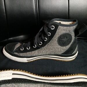 Converse Women's Size 8 Tweed & Black Suede Sherpa Lined High Tops Shoes NWOT!