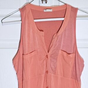 Converse Womens Sleeveless Tshirt Tank Top XS Pockets Summer Buttons Salmon Pink