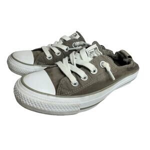 Elevate your sneaker game with these classic Converse Chuck Taylor All Star Low sneakers. The gray canvas upper material and rubber outsole provide a comfortable and breathable fit, perfect for any occasion whether it's for activewear or casual. The slip-on closure and fabric lining material make them easy to wear and the solid pattern and low-top shoe shaft style give them a timeless look. These sneakers are perfect for any season, whether it's winter, summer, fall, or spring, and the Converse brand ensures quality and durability. The product line is made in Vietnam and features a variety of sizes, including this Women's Size 6. With features such as comfort and breathability, these Converse Chuck Taylor All Star Low sneakers are the perfect addition to any wardrobe. *Darker grey/brown in color, overall pretty clean but could use some TLC*