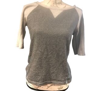 Converse women's short sleeve top in size XS. Gray color. The material is 22% cotton and 28% polyester. Measurements: 23.5 inch length, 17 inches pit to pit. P187 B35 #Converse #ShortSleeve #WomensTop