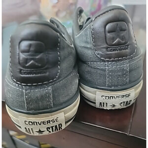 The Converse X John Varvatos Low Top sneakers in size 6 for women (8 for men) are a stylish slip-on design with a gray leather cap and rubber outsole.