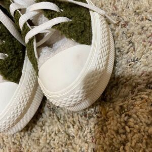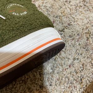 Converse Y4.5/W6.5 Sherpa EVA Platform High Top Sneakers Dark Moss Bold Mandarin