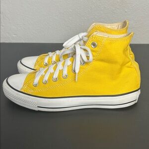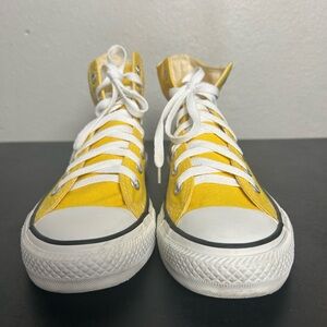 Vibrant yellow Converse Chuck Taylor Sneakers with classic white laces. Perfect for everyday wear. these shoes are used in great condition. Look at pictures for reference. I shipped fast and carefully packaged does not come with the original box but I do box ship. If you have any questions please feel free to reach out to me.