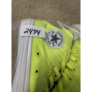 Step out in style with these vibrant yellow Converse high-top athletic shoes. Featuring a classic silhouette, these shoes boast a durable canvas upper and a striking contrast with their white rubber soles. Perfect for making a bold fashion statement while enjoying comfort and support.