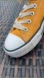 Stylish yellow Converse sneakers. Features white laces and toe cap. Comfortable and trendy design.