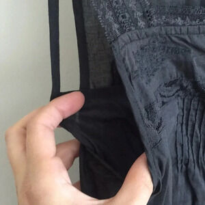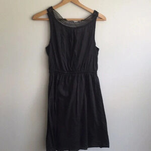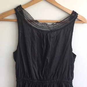 Like new dark gray sleeveless dress. Comes with separate sleep for underneath. Ornate lace and cut out details. Waist has dress. No zipper, pullover style. Soft and light. No flaws