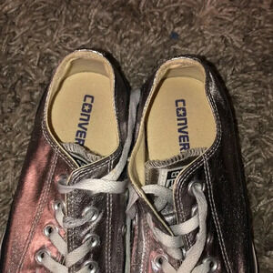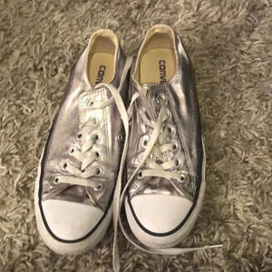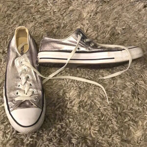 Converse low top sneakers in silver - women sz 8 / men sz 6.