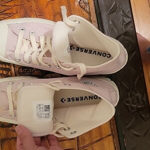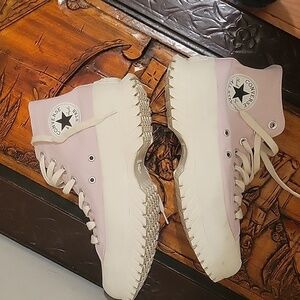 Converse pink Platform sneakers. Chunky bottom soles. Interior very clean. Unisex. Size 8.5 women's. 6.5 men's. EUC. No longer in stores.