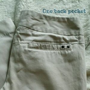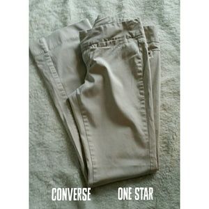 Super soft comfy khakis from converse. There is a slight stain on inside of pant leg as pictured above. These look amazing on and feel so very good. Wish I could still fit in them.