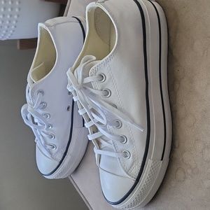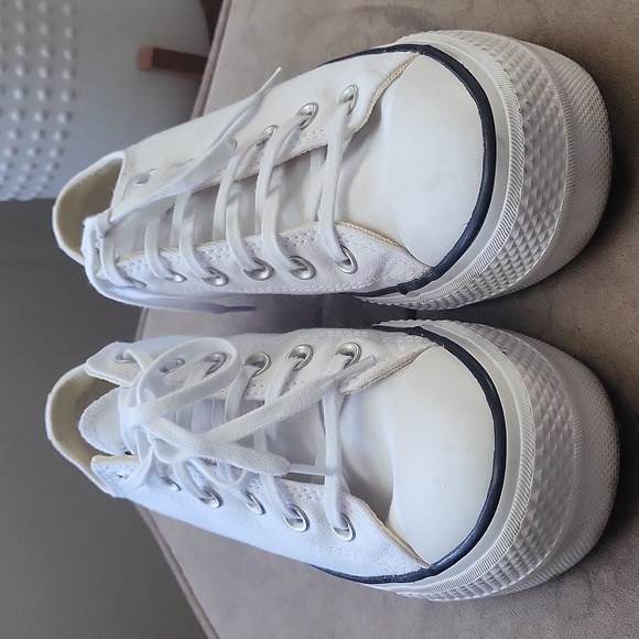 like new converse platforms that I poshed from here. only worn 2-3x total. light scuffs on the top and some dirt wear on the bottom but still in great condition! I bought a 1/2 size too big