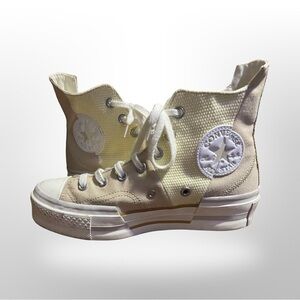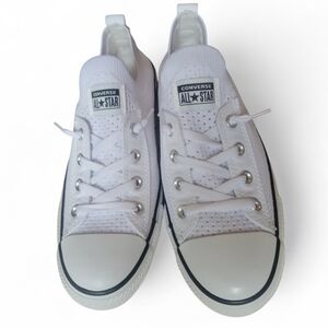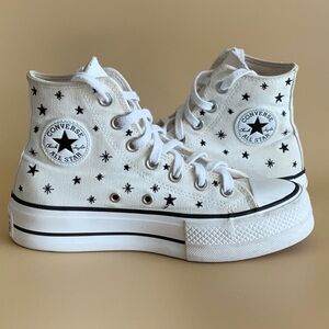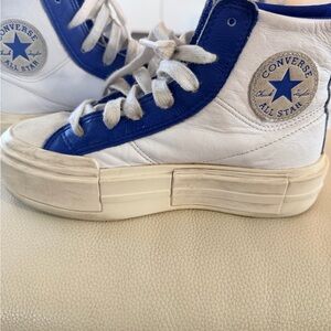 Stylish Converse high-tops in white and red. Perfect for everyday wear. Almost new!
