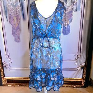 Converse sheer blue black abstract coverall ruffle dress