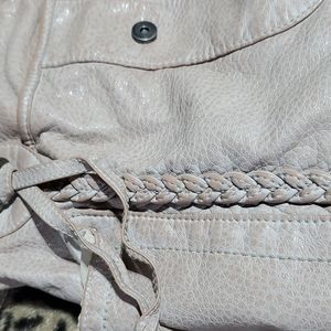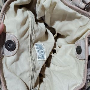Converse shoulder bag with two straps and magnetic closure. Deep pockets on outside with zip inside pocket and two open ones.