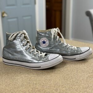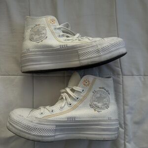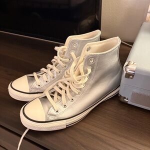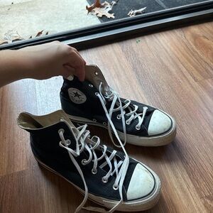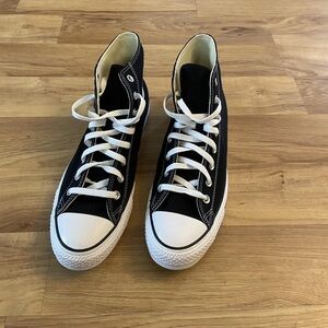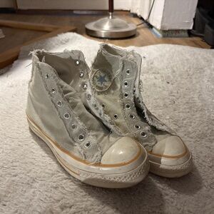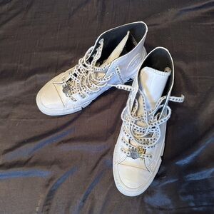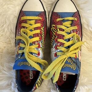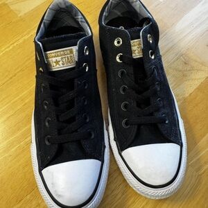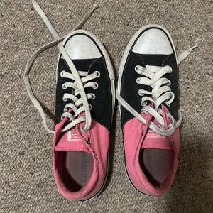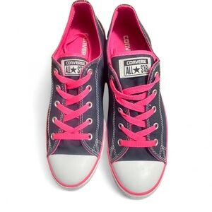 Stylish Converse sneakers. Black and gray design. Neon accents for a pop of color. Perfect for casual wear.