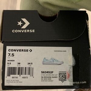 Converse sneakers women’s 7.5 low top shoreline slip mint green teal aqua canvas