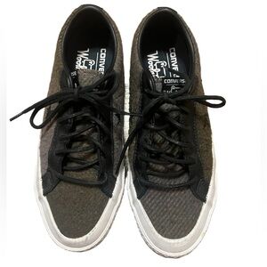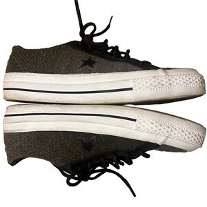 Clean and smoke free home. Converse woolrich one star ox jute olive wool low top with leather accents. Women’s 6.5 and men’s 4.5. In very good preowned condition. Fast shipping. All reasonable offers accepted m.